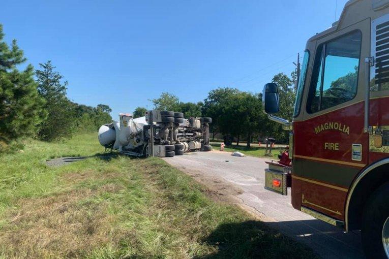 Crews are working to clear a rolled over a concrete truck on Old Hockley Road just off FM 1488. The driver was transported with minor injuries.