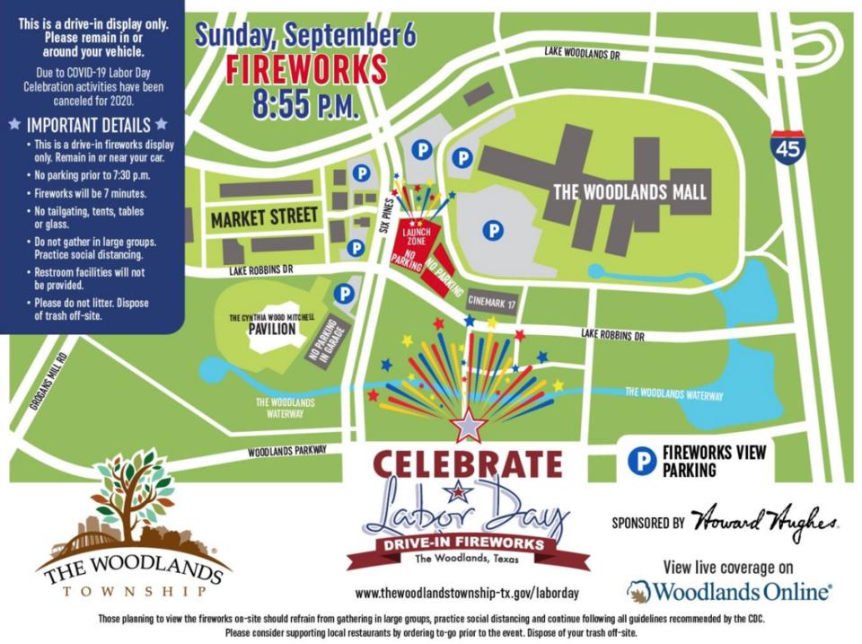THE WOODLANDS, TX – The Woodlands Township invites residents to relax and enjoy Labor Day weekend with a drive-in fireworks display on Sunday, September 6, 2020. Due to the COVID-19 pandemic, the festival portion of Labor Day in The Woodlands has been cancelled. The seven-minute fireworks display will be launched…
