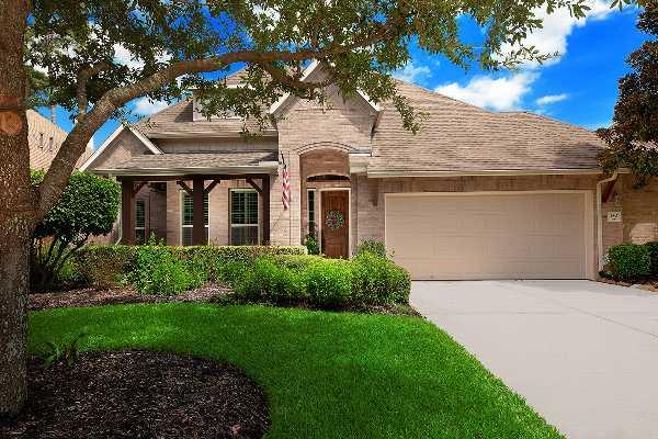 Bathroom(s): 2.5 Total Area: 2670 Sq. Ft. Lovely one story home on a cul-de-sac street in Woodforest! Great curb appeal with covered front porch, soaring ceilings, Plantation shutters, art niches, carpet, tile and wood floors. Open concept island kitchen with granite counters, breakfast bar, stainless steel appliances and under cabinet lighting overlooks the breakfast room and den with built-ins, stone fireplace and wall of French doors leading to the backyard and patio; formal dining with crown moulding and chair rail; private study; three bedrooms; 2.5 baths; fenced yard features beautiful gardens, lush landscaping and plenty of room for a pool!