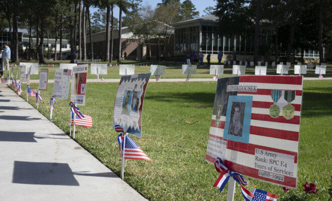 On Wednesday, November 11, The Woodlands Christian Academy joined the nationwide celebration of our veterans with coordinated activities spanning the school’s 40-acre campus. The event was organized by middle school history teacher Jill D’Etcheverry who said, “children need to be educated on honoring people who sacrifice so much for the greater good. Their selfless actions reflect Christian character and we want to impart that into the hearts and minds’ of our students.”