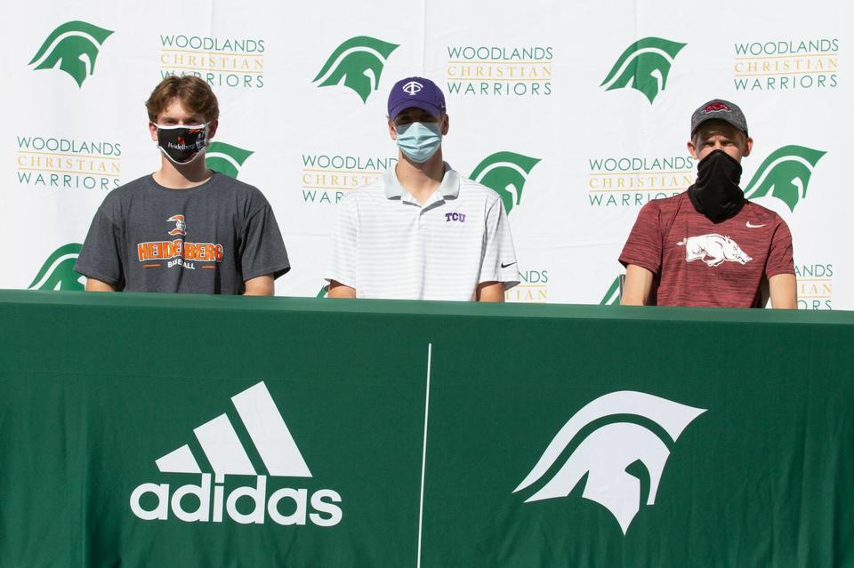 On Wednesday, November 11, 2020, three seniors at The Woodlands Christian Academy (TWCA) joined athletes around the country by participating in National Signing Day. These athletes are a part of an elite group of students who were offered the opportunity to continue their athletic careers at the collegiate level. Students, staff and family celebrated with an oncampus ceremony as a way to recognize these students’ athletic achievements and honor their parents and coaches. The seniors and each respective institution are as follows: