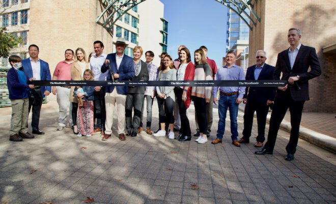 The Woodlands, TX – The Howard Hughes Corporation® held a dedication ceremony on Monday, December 28, 2020, to officially celebrate the renaming of The Woodlands® Waterway Avenue Bridge as the Alex Sutton Family Bridge in honor of the dedication of Alex G. Sutton to The Woodlands community. The celebration was presided by Montgomery County Precinct 3 Commissioner James Noack.