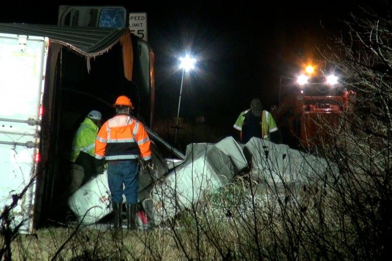 At 7 pm Friday a truck driver left the Valero Station on Calvary Road traveling west on Calvary. The driver then turned south on the I-45 feeder. As he did the truck loaded with 88 bales of cotton weighing 500 pounds each rolled over. The driver was uninjured. Crews from HMR, Adamick Wrecker Service, and Miller Wrecker Service worked until midnight to unload and right the truck. They now have the task of picking up spilled diesel fuel. The southbound feeder, south of Calvary remains closed.