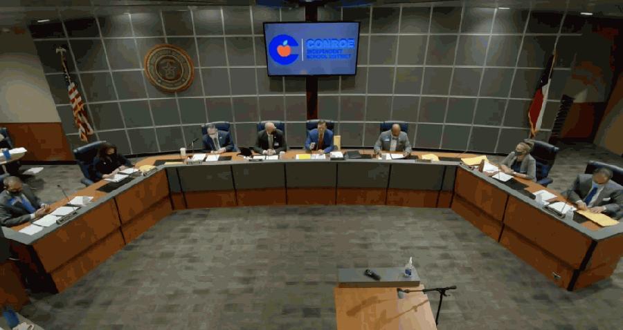 Conroe ISD board of trustees President Skeeter Hubert presented a resolution supporting priority vaccinations for Texas teachers during the Feb. 23 meeting. (Screenshot via Conroe ISD YouTube) Now is the chance to help your local community succeed. Become a Patron by contributing to Community Impact Newspaper and gain daily insight…