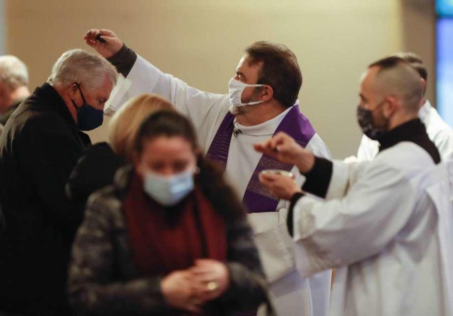 Catholics take part in an Ash Wednesday service at St. Anthony of Padua Catholic Church in The Woodlands. The church encouraged parishioners to attend virtually, while they also offered an in-person abbreviated service due to the weather. Other congregations, such as Conroe’s Sacred Heart Catholic Church, decided to postpone distributing ashes until this weekend.