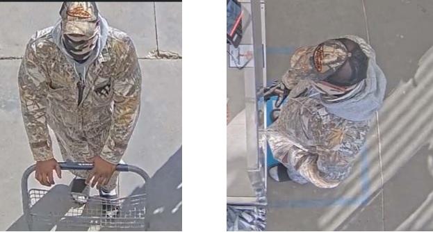 THE WOODLANDS, TX — On January 31, 2021 at around 3:40 PM, the Montgomery County Sheriff’s Office was dispatched to Lowe’s Home Improvement store located at 3052 College Park Drive in The Woodlands, Texas in reference to a Robbery. The suspect entered the store at about 2:30 PM and began walking around the garden center. The suspect approached a female cashier at about 3:30 PM, handed her a note, and demanded all the money in the register. The suspect is described as a black male, about 30 years of age, wearing camo coveralls, camo baseball cap, camo facemask, gray hoodie sweater, and black slides/sandals. The suspect was driving a small, black passenger car with dark colored wheels. If you have any information regarding this suspect or about the case please contact the Montgomery County Sheriff’s Office at 936-760-5800 or Multi-County Crime Stoppers at 1-800-392-STOP (7867) and reference Case #21A031618.