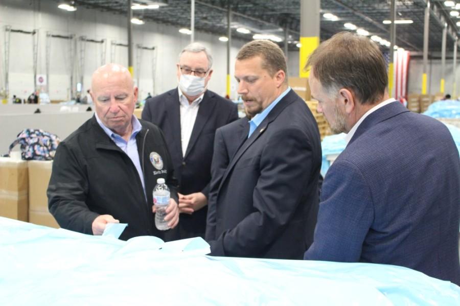 U.S. Rep. Kevin Brady, R-The Woodlands, and state Rep. Steve Toth, R-The Woodlands, toured the Wildcat PPE facility just north of Hwy. 242 on March 22 to observe how the company has been creating jobs and manufacturing American-made personal protective equipment, such as surgical gown and caps, in The Woodlands area.