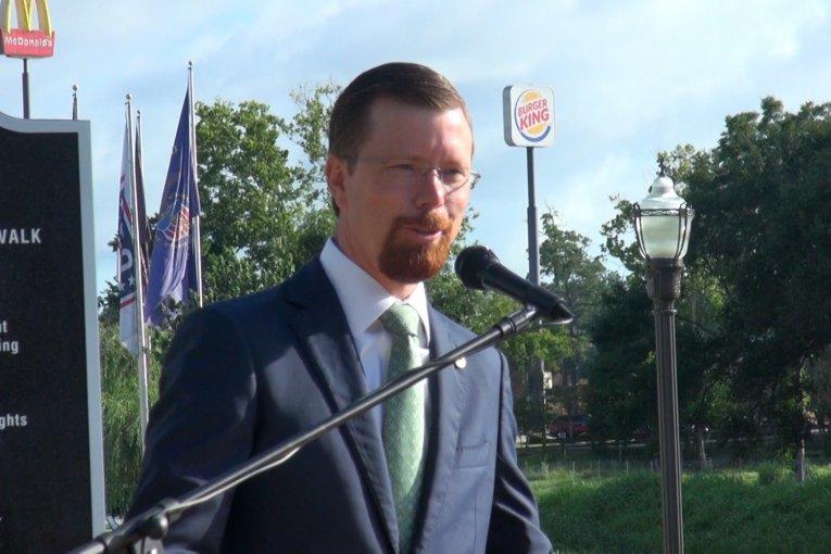CONROE, TX– As Americans prepare to celebrate Independence Day, State Representative Will Metcalf, R-Conroe held a very patriotic press conference Tuesday at Montgomery County Veterans Memorial Park. An exuberant Metcalf joined Montgomery County Veterans Memorial Commission Chairman Jimmie Edwards and announced the allocation of $7 million to expand the flag park and add a museum and visitors center.