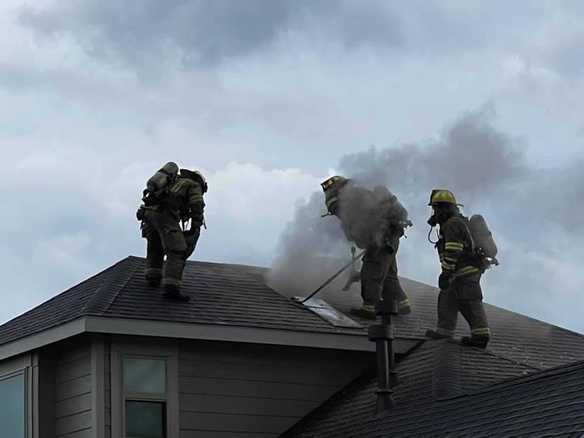 THE WOODLANDS, TX — The weather that rolled through Saturday afternoon had area fire departments busy responding to multiple weather related calls including several lightning strikes. Pictured here is The Woodlands Fire Department assisting South Montgomery County Fire Department with a residential structure fire caused by a lightning strike. The call came in at 3:34 pm in the 31000 Block of Liberty Knoll. Crews were able to get a quick knockdown and keep the fire damage confined to the attic.