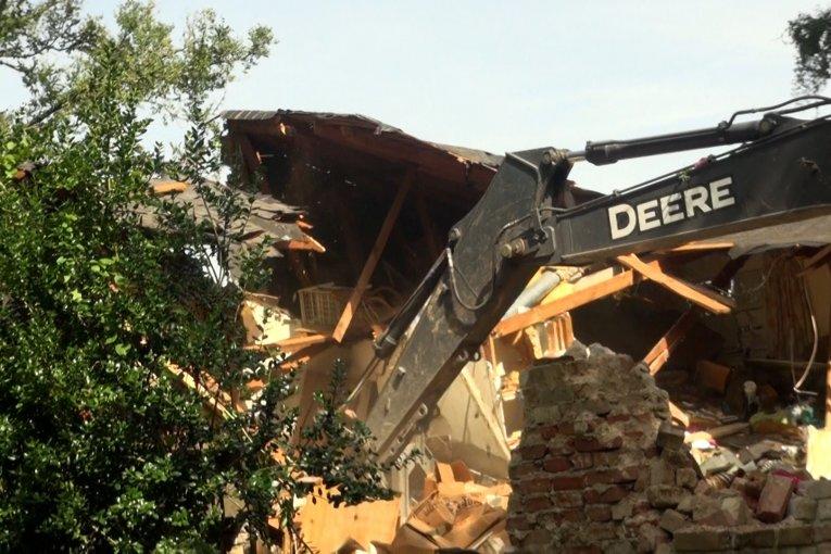 For months residents have been calling and complaining about a home at 510 Brandon in River Plantation which has been abandon. The 2800 square two-story home which has flooded twice and then left by the owners has been not just an eyesore but a danger to children who use one of the parks directly behind it. Precinct 2 Constables and Montgomery County Sheriff’s Office have had numerous calls of vagrants in the home, children in the home, and a location for drug use. Using the Montgomery County Precinct 2 Commissioners budget funds, Commissioner Riley paid to have the home removed. Crews began Tuesday morning leveling the home which was full of furniture and debris. They hope the project will be complete within two days. The property will most likely be used to add to the park which is directly behind. The property cannot be sold since it is in the flood plain. The home sat at 115 feet above sea level according to USGS, The flood stage of the San Jacinto River is 115 feet. The house sits just across the golf course from the river. According to Montgomery County, Tax Office records the property was owned by a Violey Bennett of Spokane, Washington. The assessed value was $19, 130. Prior to Harvey, the value was showing $173, 570. Several other homes on the street remain vacant and damaged.
