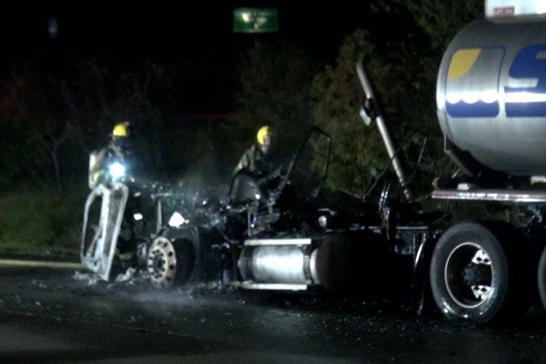 At 11:43 pm Wednesday Montgomery County Fire received a call from a truck driver with Sun Coast Fuels. The driver stated the cab of his truck was on fire and he pulled over near I-69 and SH 99 just north of the funeral home. He also stated he was hauling a tanker with 7000 gallons of gasoline and diesel. Porter Fire responded with multiple units. The first unit on the scene reported the tractor part of the truck was fully involved and encroaching on the tanker. Other trucks started to arrive and assist in fighting the blaze. Montgomery County Sheriff’s Office closed the northbound lanes of the freeway. Keeping the tank cool they were able to contain and extinguish the blaze before the tanker caught fire. HAZMAT teams are now on the scene as diesel fuel from the tractor’s tanks flowed into the ditch. At 3 am two left lanes were opened to traffic. The two right lanes will remain closed for approximately 8-12 hours as the scene is cleared.