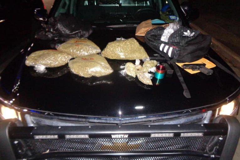 On 09/22/2021 at approximately 19:30 hours while working traffic enforcement a Pct. 1 Deputy conducted a traffic stop on a black Dodge Charger. A Probable Cause search of the vehicle was conducted after the Deputy could smell a strong odor of Marijuana emitting from the vehicle. During the search deputies located approximately 4 pounds of Marijuana along with a pistol and a large sum of cash. The driver and two passengers were placed in custody for Possession of Marijuana and Unlawful Carry of a Firearm.