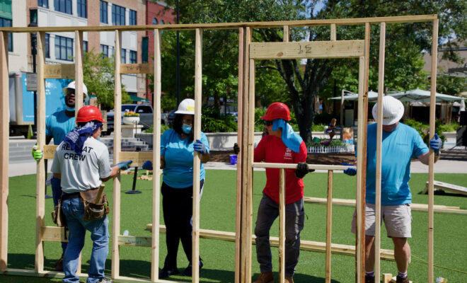 On Tuesday, October 5, the community contributed to the success of affordable and safe housing by participating in a Wall Building event at Market Street in The Woodlands with Habitat for Humanity of Montgomery County. The organization hosted the event in honor of World Habitat Day, a day that the United Nations General Assembly took an important step in promoting the idea that everyone deserves a decent place to live.
