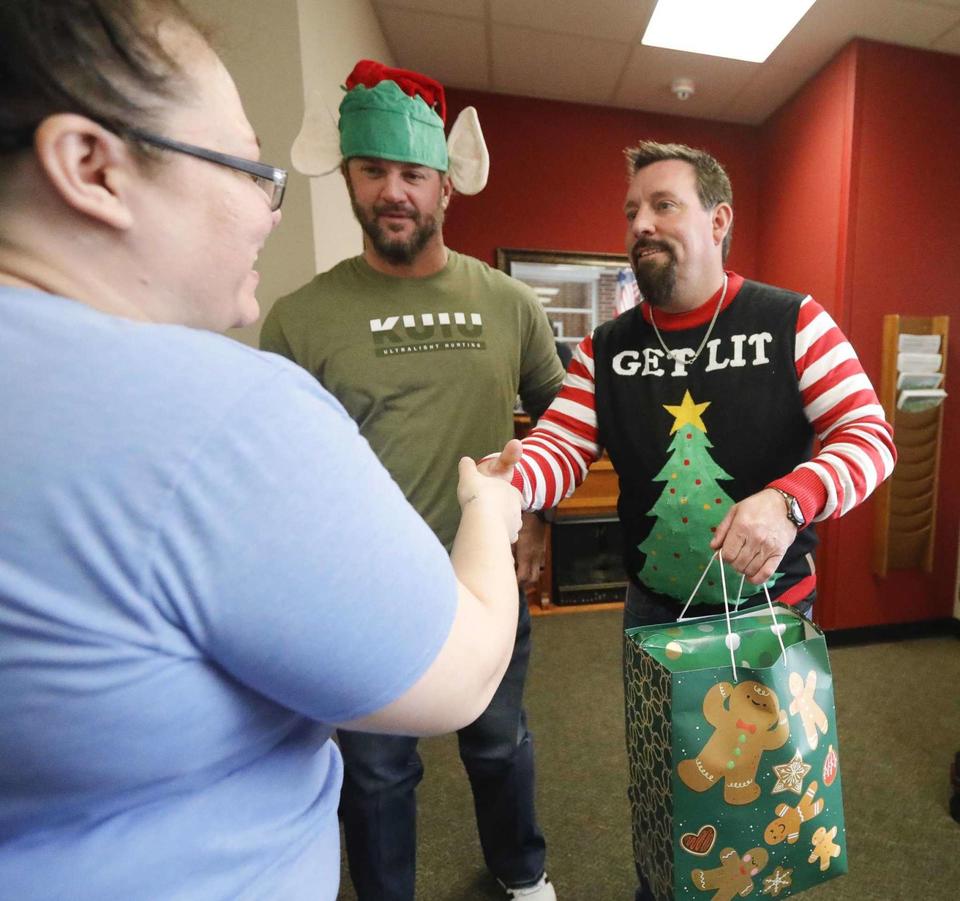 Widely known as the “Lone Survivor,” retired U.S. Navy SEAL Marcus Luttrell introduced himself as Buddy the Elf to an eager 5-year-old boy. Decked out in the “Elf” movie hero’s signature green attire, Luttrell and life-long friends on Friday were hosting a gift drive for families of some students at Gerald D. Irons, Sr. Junior High School in south Conroe.