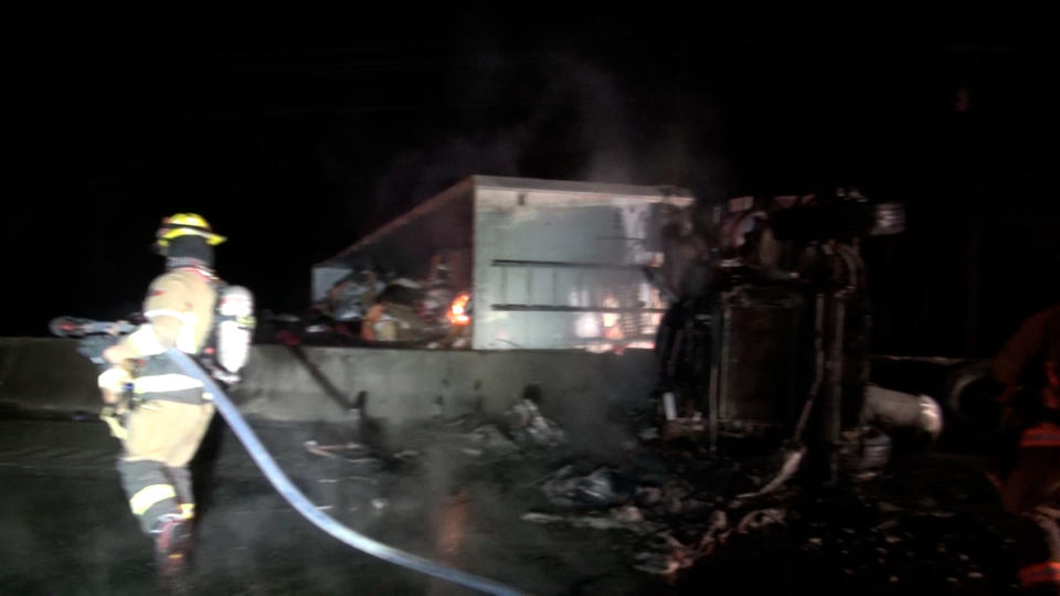 At 4 am Friday morning an Atomic Services 18-wheeler was hauling just over 50,000 pounds of trash from a Conroe Trash Transfer Station to the Goodrich Landfill. The driver was eastbound on SH 105 just past Old 105. As he crossed the overpas…
