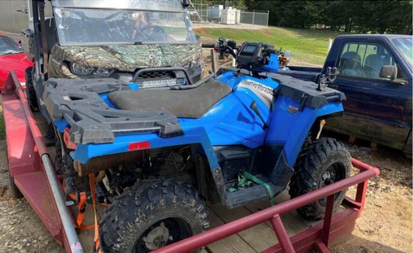 CONROE, TX — On February 28, 2022, the Montgomery County Sheriff’s Office a received a report of a stolen trailer and Can-Am UTV. These items were taken from the Parkway Storage located at 693 Blake Road, Conroe, Texas 77304. The trailer is described as a homemade bumper pull red lowboy trailer with a 4-wheeler gate consisting of a removable chrome bar. The UTV (in back of trailer pictured below) is described as a 2018 Can-Am Defender HD 10, mossy oak edition, 2dr with two light bars and a front winch.