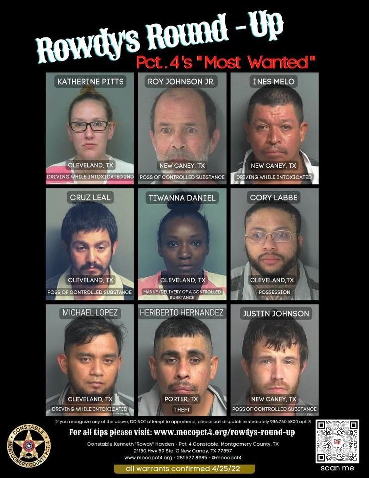 Round 4 of Rowdy’s Round-Up (MOCO Pct. 4’s “Most Wanted”) Welcome to round 4 of Rowdy’s Round-Up (Montgomery County Pct. 4’s “Most Wanted”)!. If you have any tips on the whereabouts of the individuals in the post, please let us know!. You can remain anonymous if you wish. *All arrests…