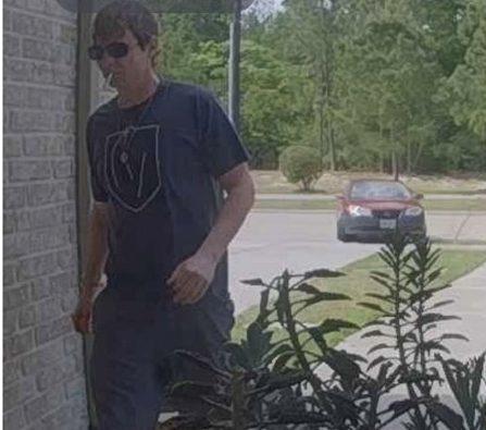 PORTER, TX — The Montgomery County Sheriff’s Office is attempting to identify the pictured male who committed a package theft on May 3, 2022. The suspect walked onto the front porch of a residence in the Woodridge subdivision in Porter, Texas, and stole several packages. The suspect is a white male who drove a red car with a black front bumper.