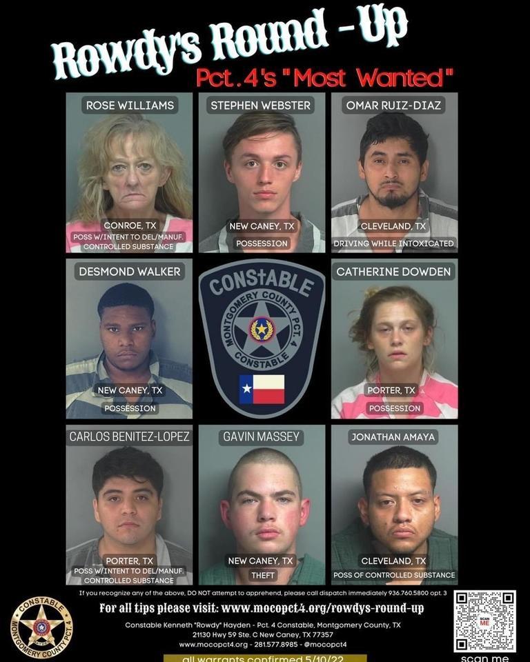 Welcome to round 6 of Rowdy’s Round-Up (Montgomery County Pct. 4’s “Most Wanted”)!. If you have any tips on the whereabouts of the individuals in the post, please let MOCO Pct. 4 know! Do not attempt to apprehend these suspects on your own!. You can remain anonymous if you wish.