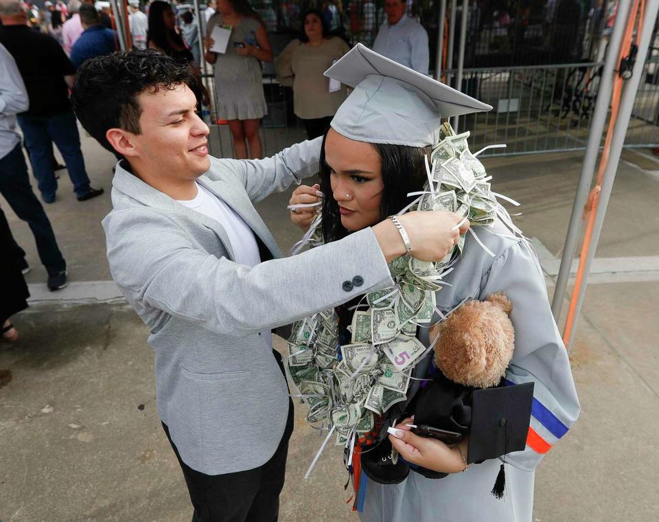 This is a carousel. Use Next and Previous buttons to navigate. It’s cap and gown season once again for seniors across Montgomery County and Grand Oaks High School class of 2022 celebrated graduation Tuesday night at The Cynthia Woods Mitchell Pavilion in The Woodlands.