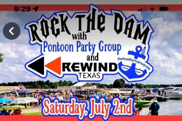 ROCK THE (Lake Conroe) DAM with Rewind Texas & Pontoon Party Group this 4th of July Weekend!! This is a 100% donated event made possible by the San Jacinto River Authority, Montgomery County local law enforcement, Pontoon Party Group, Rewin…