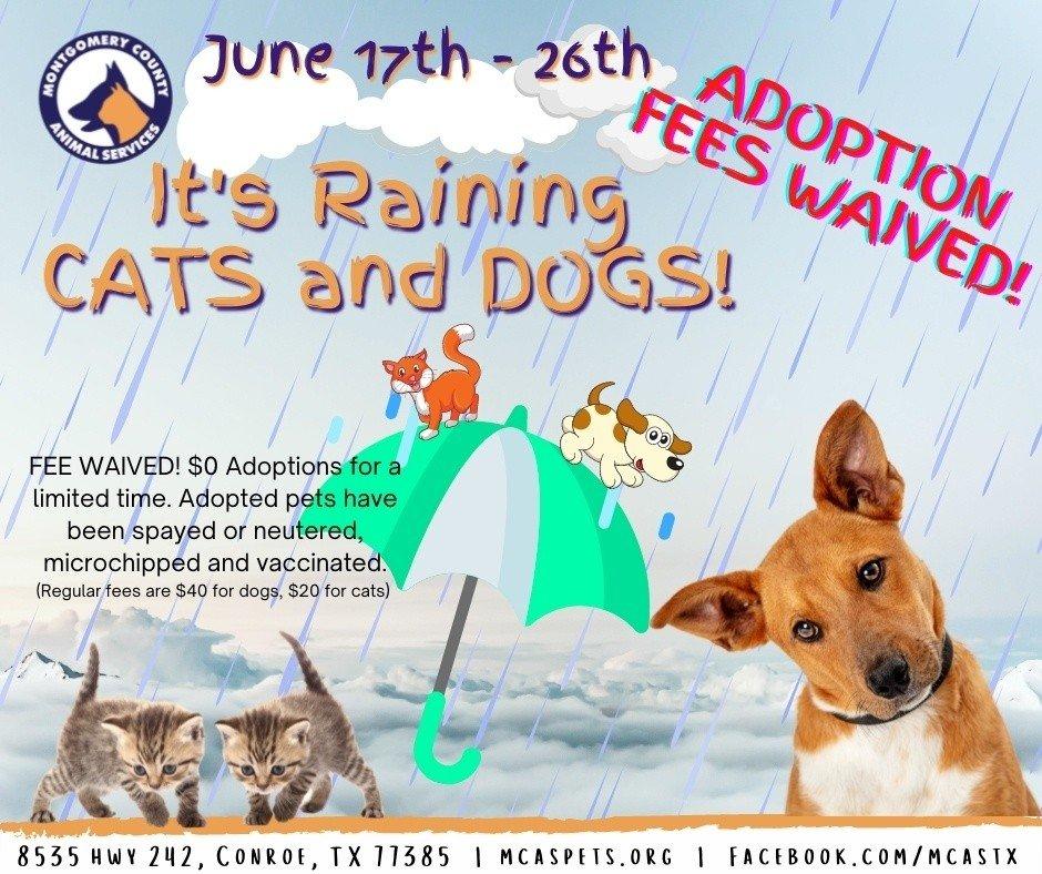 It’s raining cats and dogs and MCAS is currently experiencing flood conditions. From Friday June 17 to Sunday June 26 MCAS is waiving all adoption fees. Please visit Montgomery County Animal Shelter and meet your new best friend. MCAS have around 300 dogs and several cats who are waiting to…