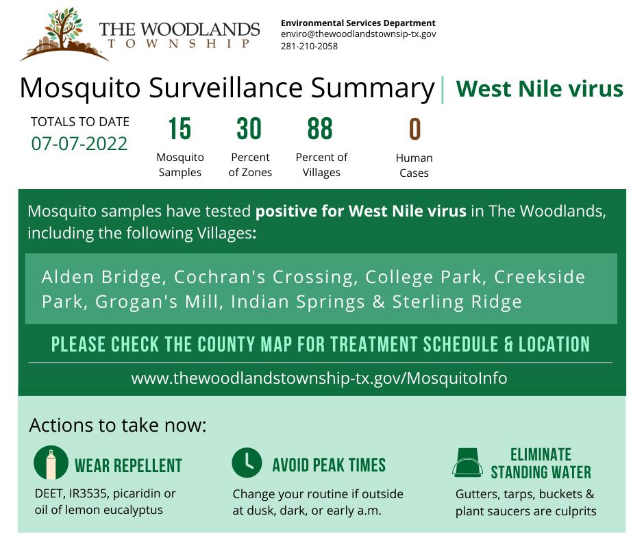 Original Article: https://thewoodlandstownshipblog-environment.com/2022/07/08/west-nile-virus-is-actively-circulating-in-the-woodlands-take-precautions/
