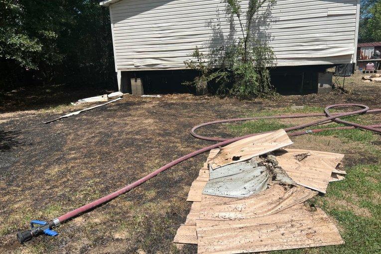 FIREFIGHTERS SAVE MOBILE HOME AS NEIGHBORS ILLEGAL TRASH FIRE SPREADS