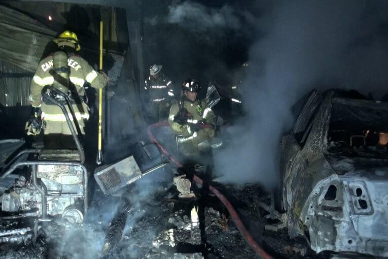 At 10:40 pm Caney Creek Fire was dispatched to a reported large building on fire in the 13000 block of McGreggor Road in the Bennette Estates area. The first truck arrived on the scene with a building fully involved with several vehicles an…