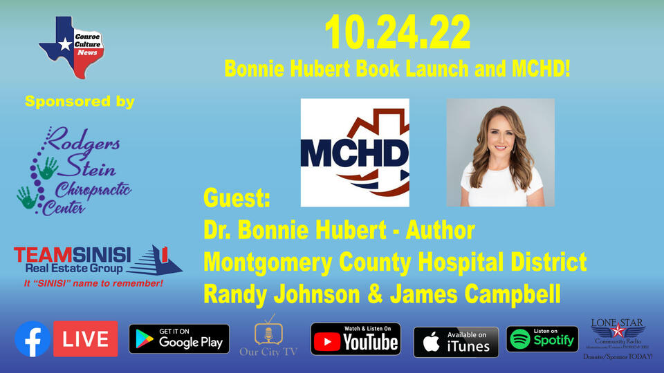 10.24.22 – Bonnie Hubert Book Launch and MCHD! Conroe Culture News with Margie Taylor. Dr. Bonnie Hubert is a life coach, educator, and author of the book, “Every Woman Needs a Maid”. Montgomery County Hospital District MCHD was established through special legislation in 1977 to provide healthcare…