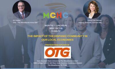 THE WOODLANDS, TX – The Montgomery County Hispanic Chamber (MCHC) welcomes the community to their luncheon, The Impact of the Hispanic Community in Our Local Economies, on Wednesday, October 26, 2022, from 11:30 am to 1:00 pm. The luncheon will take place in the Sam Houston Conference room on the 4th floor of Sam Houston State University-The Woodlands Center, located at 3380 College Park Dr, The Woodlands, TX. The presenting sponsor for the luncheon is OTG. Tickets to the luncheon can be purchased via Eventbrite.