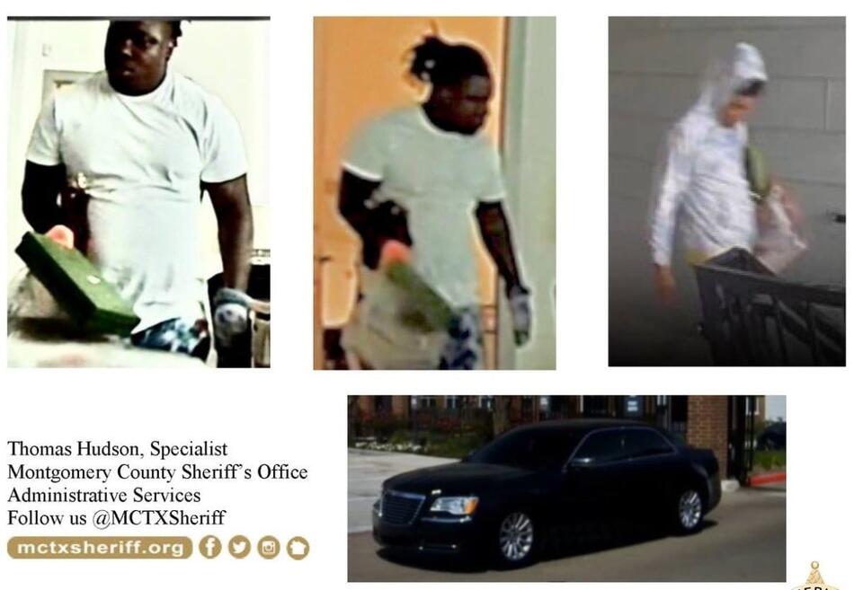 MCTXSheriff Seeks Identity of Apartment Burglary Suspects. MCTXSheriff Seeks Identity of Apartment Burglary Suspects. The Montgomery County Sheriff’s Office is attempting to identify the individuals pictured below who burglarized an apartment at the Avaya complex on Loop 494 in Kingwood, Texas. On March 12, 2023, at about 12:30 pm, the homeowner was away when she received a notification that her front door had been opened. While remotely viewing the cameras, the homeowner observed two black males inside, who stole several items and left in a black Chrysler 300. When deputies arrived on scene, they determined the front door had been pried open.