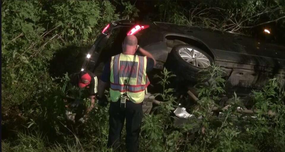 Woman survives after her vehicle goes off I-69 overpass and crashes into creek, officials say