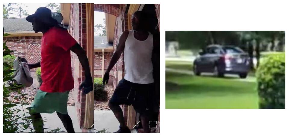 The Montgomery County Sheriff’s Office is seeking the community’s help to identify two suspects involved in a burglary. On July 4, 2023, at 2 p.m., Deputies responded to the 3900 block of Rayford Rd in Spring, in reference to a burglary of a habitation call. During the course of their investigation, Deputies were able to obtain video footage from a doorbell camera as the suspects were exiting the residence carrying items from the victim’s residence. Both suspects were then observed leaving the area in a gray, four-door sedan.