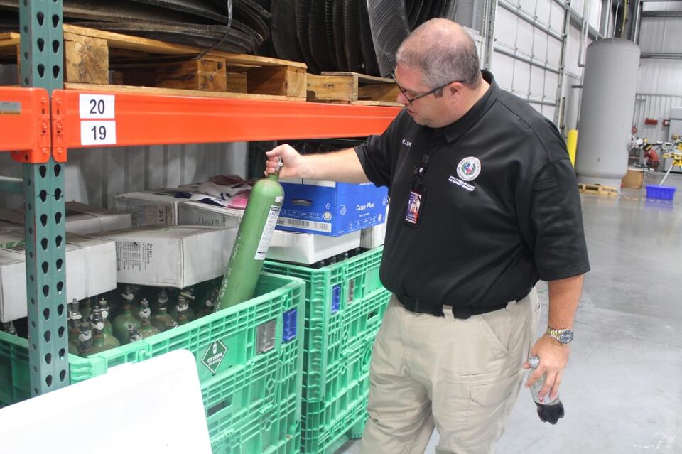 Jason Millsaps, Montgomery County’s executive director of emergency management, shows the county’s store of oxygen tanks, one of the many supplies that can be sent to homes and centers to help those who are in need. (Jessica Shorten/Community Impact) As Montgomery County prepares to provide new emergency shelters for natural…