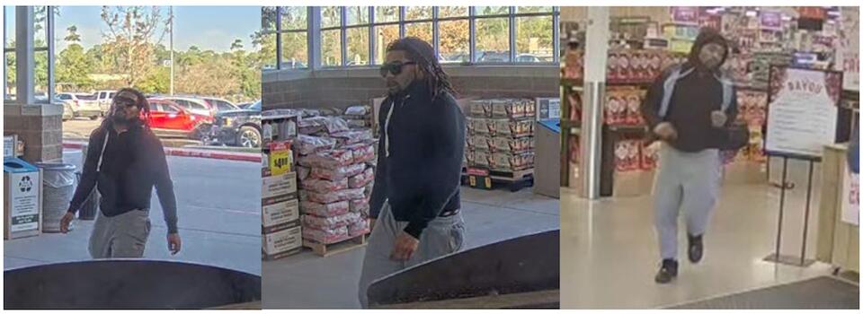 The Montgomery County Sheriff’s Office is attempting to identify the suspect pictured below, who was involved in an Indecent Exposure and Indecency with a Child on February 14, 2024. On that day, at approximately 9:00 a.m., the suspect entered the H-E-B grocery store located in the 3600 block of FM 1488, where he approached a female and her one-year-old child and exposed his genitals. After being confronted by the female, the suspect fled the location in a dark-colored Chevrolet SUV.