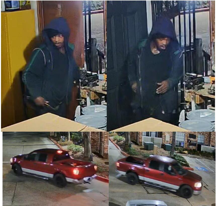 The Montgomery County Sheriff’s Office is attempting to identify the suspect and vehicle pictured below, wanted in connection to a Burglary of a Building at Valleywood Apartments. On May 9, 2024, at about 3:52 PM, deputies with the Montgomery County Sheriff’s Office responded to the 300 Block of Valleywood Drive, The Woodlands, Texas in reference to a Burglary call. Upon arrival, deputies were advised that someone had broken into the maintenance building and stole several tools.