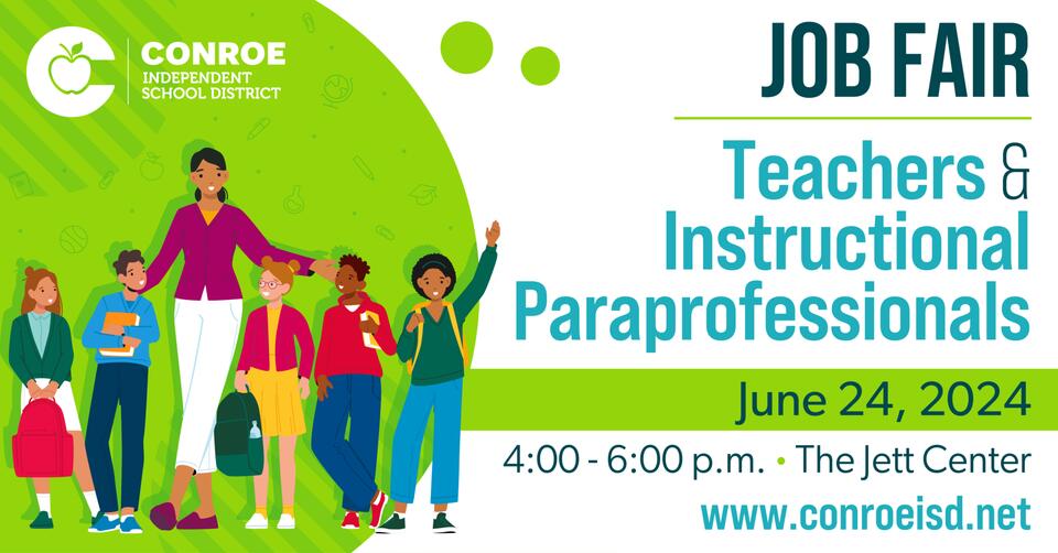 Conroe ISD will be hosting an in-person job fair to hire teachers, as well as special education and instructional paraprofessionals Monday, June 24. The job fair will be held from 4-6 p.m. at the Walter P. Jett Teacher Training Center, located on the north end of Woodforest Bank Stadium at 19043 David Memorial Drive, Shenandoah, Texas, 77385.