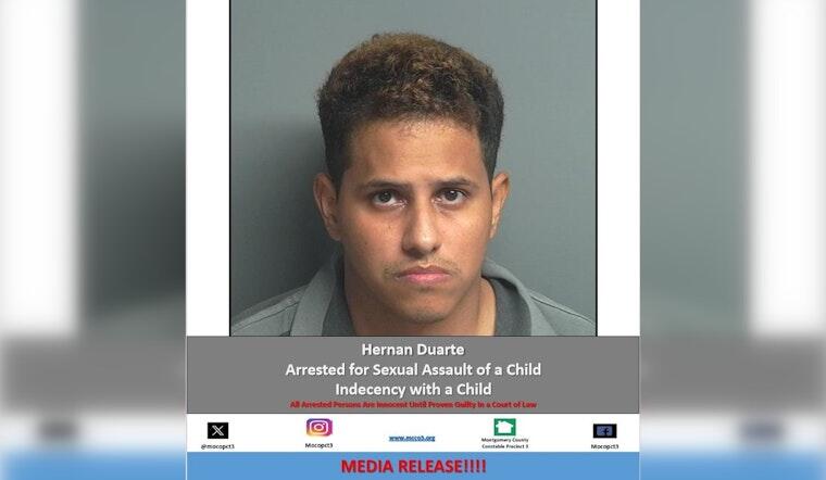Source: Facebook/Constable Ryan Gable, Pct. 3 Constable, Montgomery County, TX. A 35-year-old Harris County man faces charges for allegedly sexually assaulting multiple underage girls in The Woodlands and other areas around Houston. Hernan Duarte was apprehended at a local park after a bait operation conducted by Montgomery County Precinct 3 Constable Ryan Gable’s office.