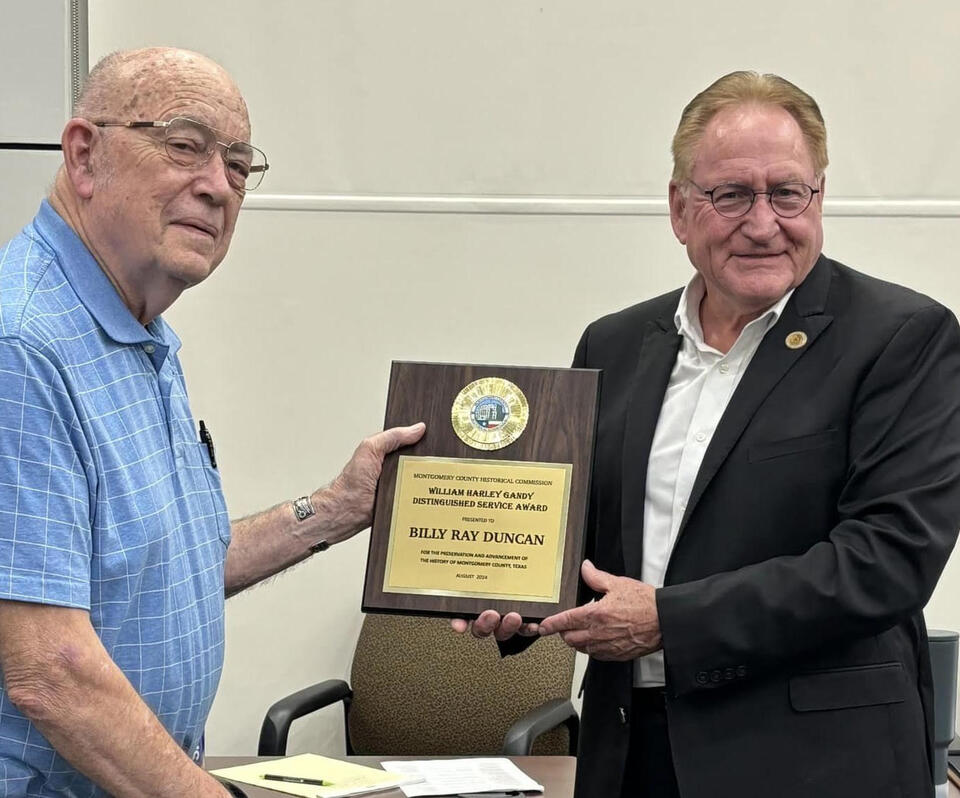 Montgomery County Judge Mark Keough presents Montgomery Historical Society President, Billy Ray Duncan, with the the ‘William Harley Gandy Distinguished Service Award’ this past Monday at the Chamber of Commerce in Conroe. MONTGOMERY COUNTY, TX — The preservation of history is a commitment, and for those who have…