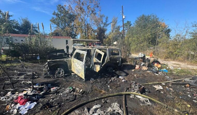 Source: Facebook/Mark Herman, Harris County Constable Precinct 4. On Monday morning, sirens were reported near Booker Road and Nelson Street in Spring after a vehicle caught fire, leaving one person with burn injuries, according to Harris County Precinct 4 deputies. Firefighters and EMS crews responded to extinguish the fire, while deputies managed traffic and kept drivers back so first responders could work safely.