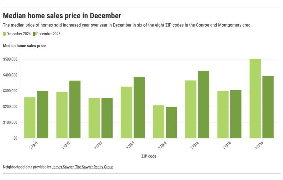 See how the Conroe and Montgomery housing market fared in December 2025. (Courtesy Adobe Stock) Home sales rose year over year in December in the Conroe and Montgomery area, according to market data provided by local real estate firm The Sawyer Realty Group. The gist. In four of the eight…