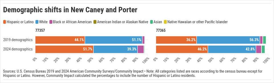 Data from the U.S. Census Bureau, released Jan. 29, shows the New Caney- and Porter-area populations increased, grew older and became more diverse from 2019-24. (Emily Lincke/Community Impact) The New Caney- and Porter-area population grew by roughly 30.3% over five years, rising from 64,476 residents in 2019 to 84,010 residents…